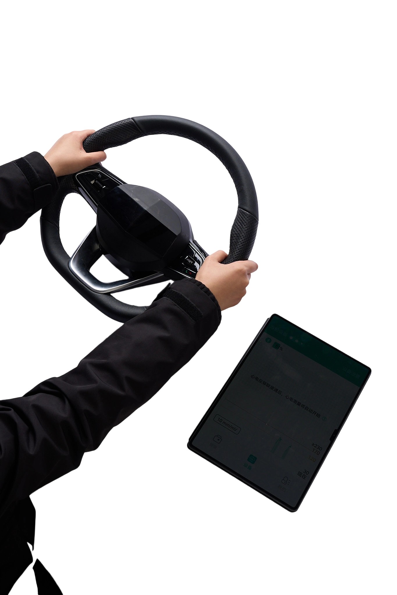 心率监测方向盘是一种集成了心率监测职能的汽车方向盘。 此方向盘用了电极检测法的道理,方向盘两侧牛皮是一种带有导电职能的牛皮,相当于两个电极,驾驶者双手握住方向盘时,电极通过检测人体的生物电信号来丈量心率。